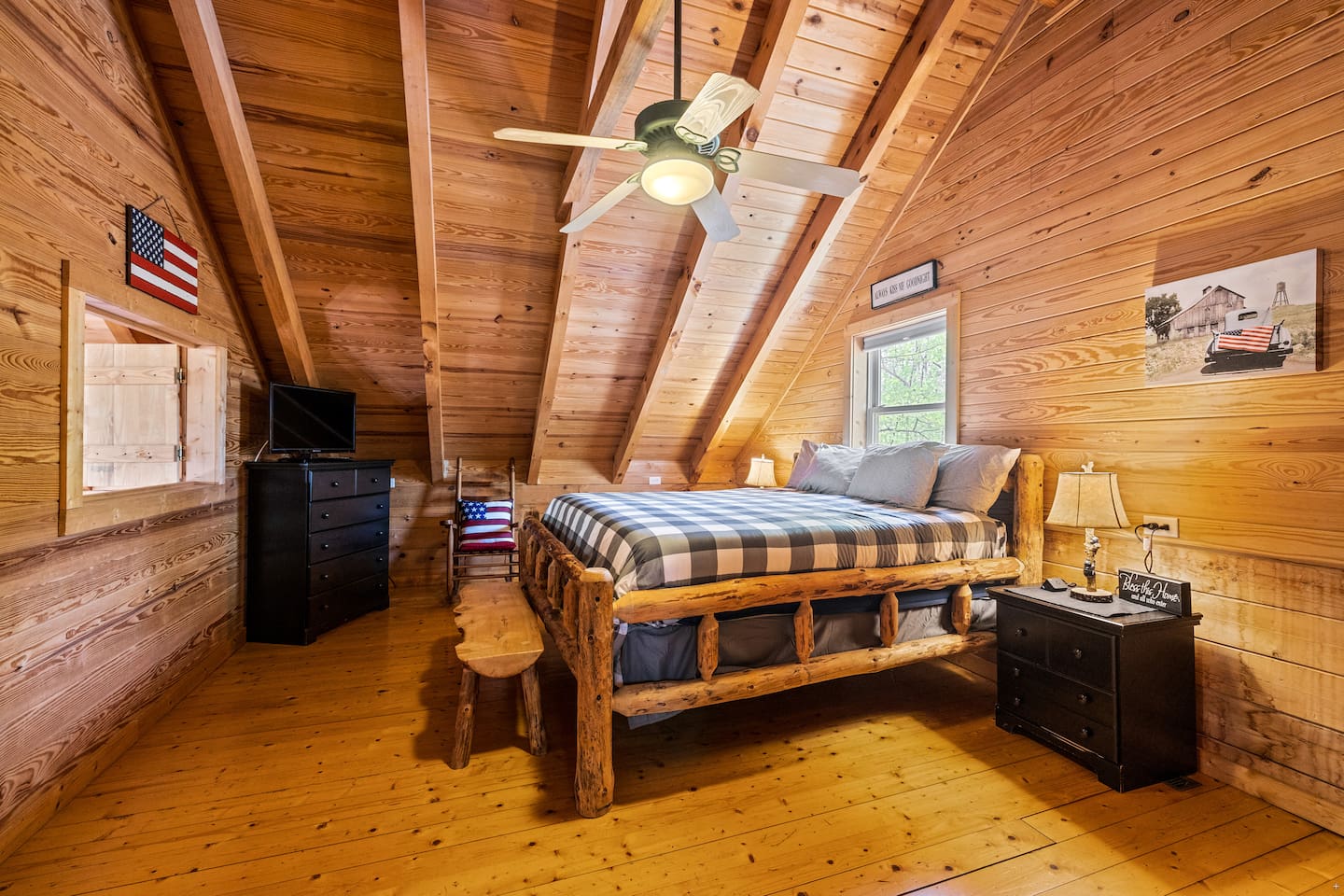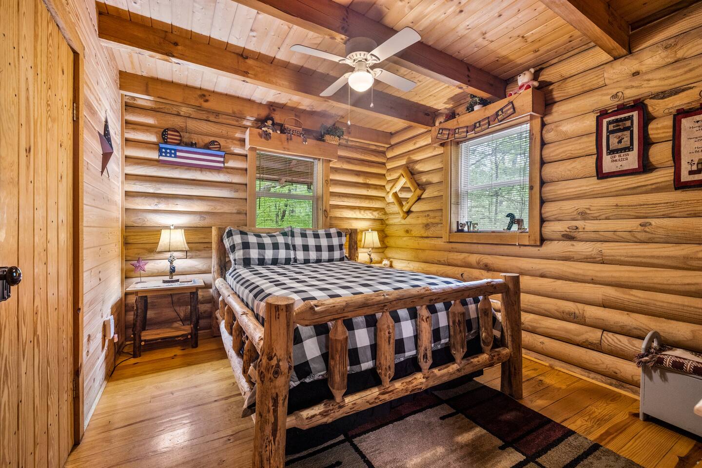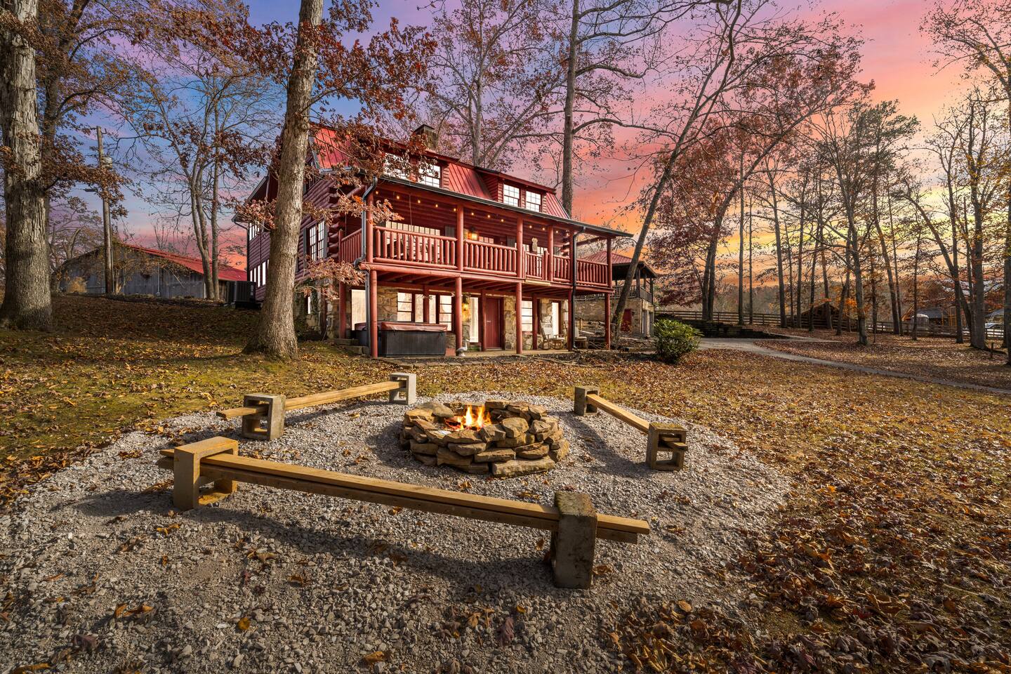 4 log cabins on 16 gated acres of woods and hayfields. Sleeps 31 guests in 22 beds, 10 Bedrooms. 15 minutes to UTK/Neyland/Knoxville/airport, 45 min to Dollywood/Pigeon Forge/Great Smoky Nat'l Park. Perfect for family reunions, retreats. Each cabin is unique, all w/private kitchen, hottubs. BBQ pavilion. Lots to do w/pool table, sauna, wet bar, arcade games, Bass fishing, horseshoes, cornhole, tetherball, basketball, trails. Use as a base for exploring TN. Need more space? RV camping allowed.