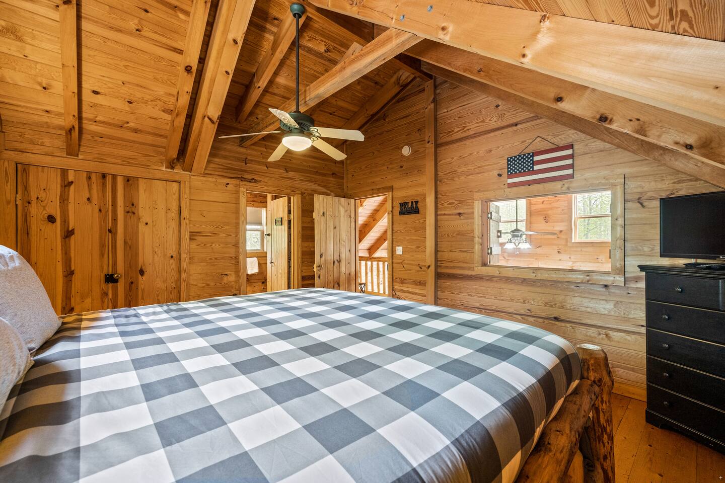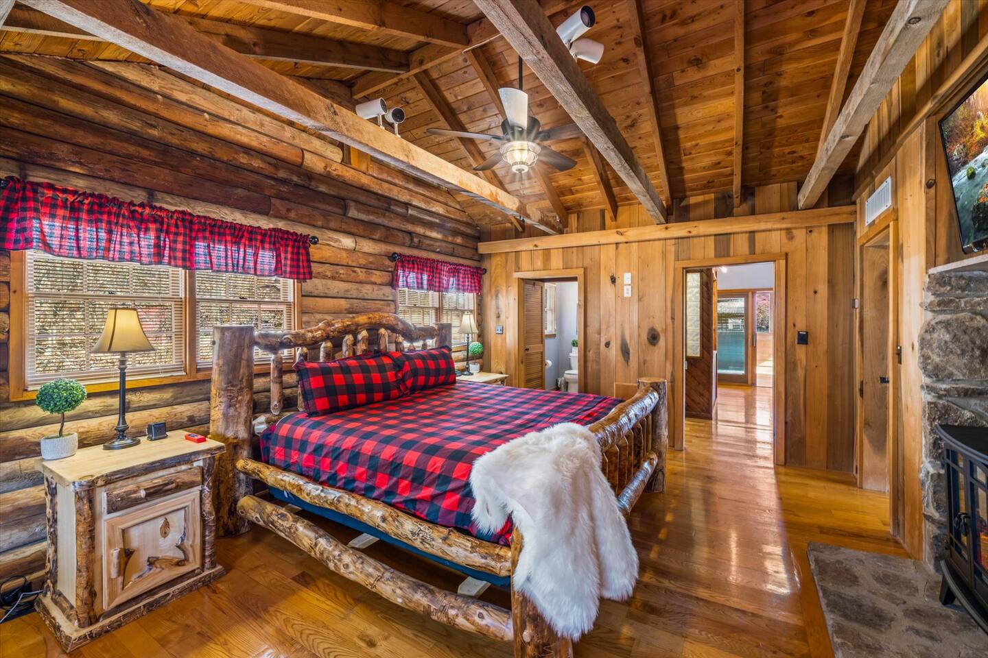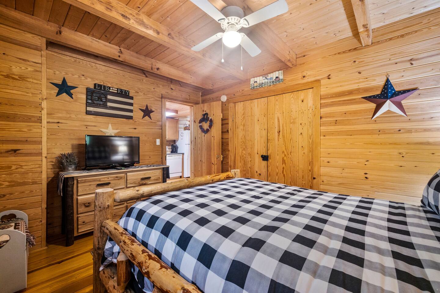 4 log cabins on 16 gated acres of woods and hayfields. Sleeps 31 guests in 22 beds, 10 Bedrooms. 15 minutes to UTK/Neyland/Knoxville/airport, 45 min to Dollywood/Pigeon Forge/Great Smoky Nat'l Park. Perfect for family reunions, retreats. Each cabin is unique, all w/private kitchen, hottubs. BBQ pavilion. Lots to do w/pool table, sauna, wet bar, arcade games, Bass fishing, horseshoes, cornhole, tetherball, basketball, trails. Use as a base for exploring TN. Need more space? RV camping allowed.