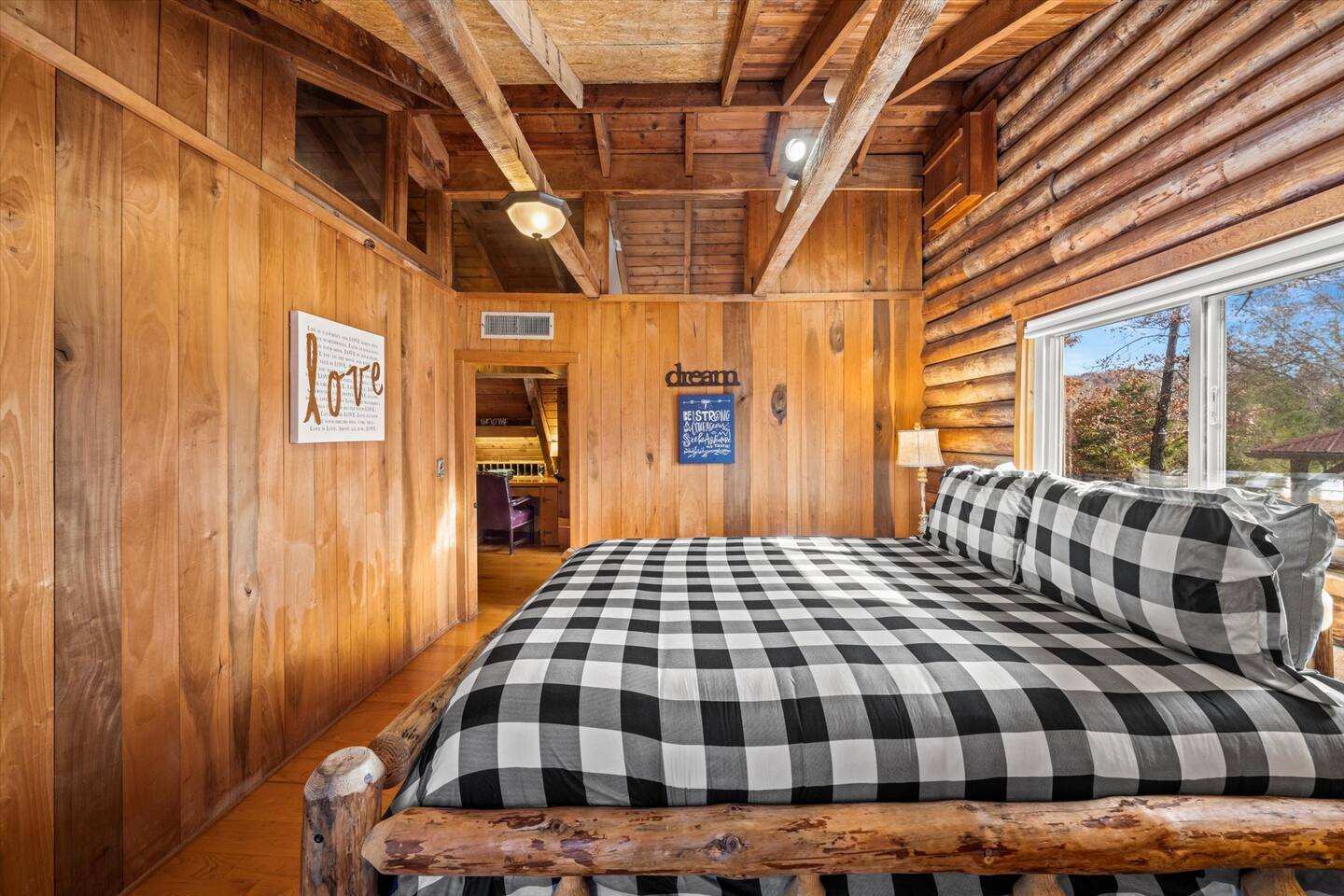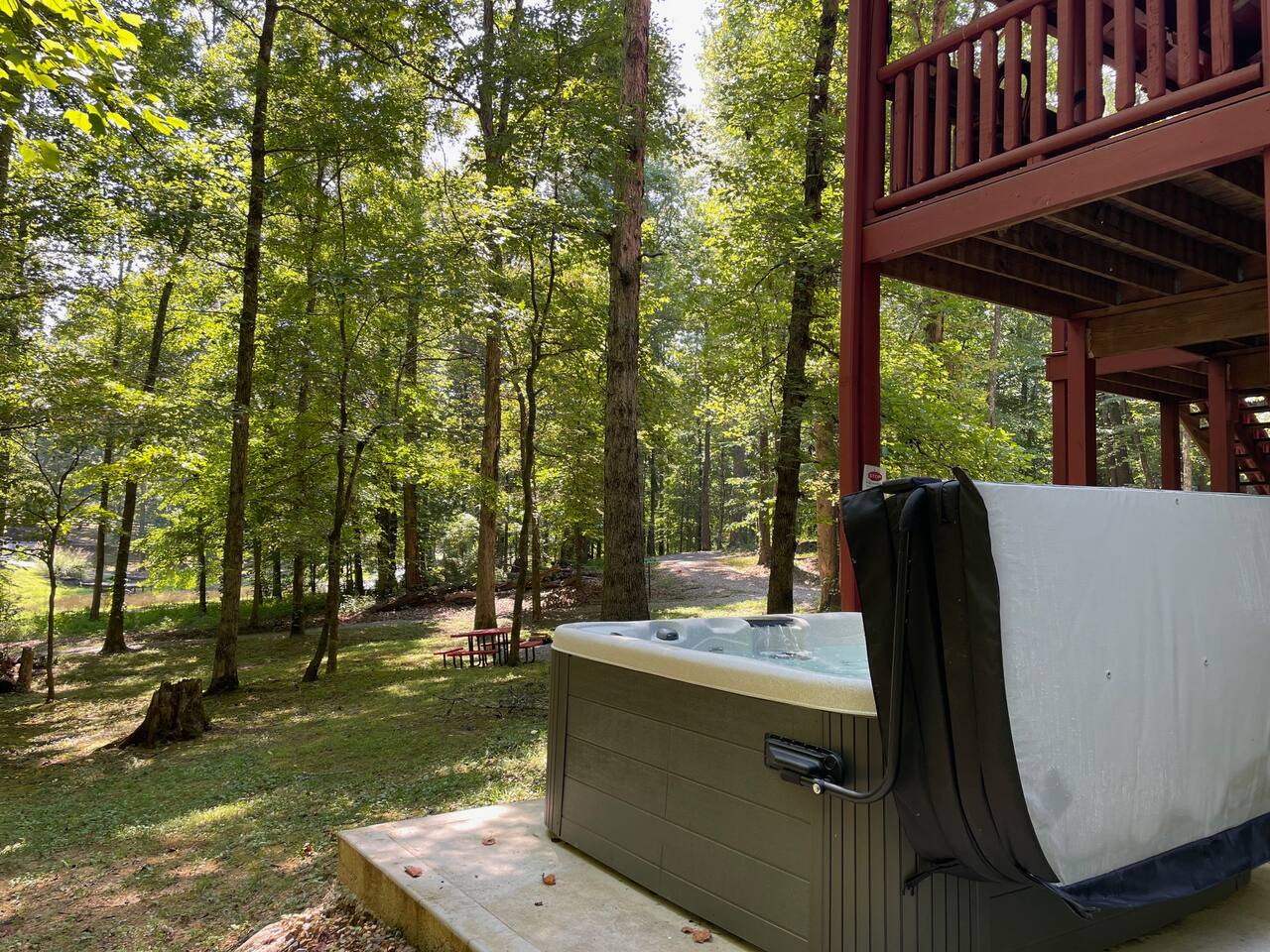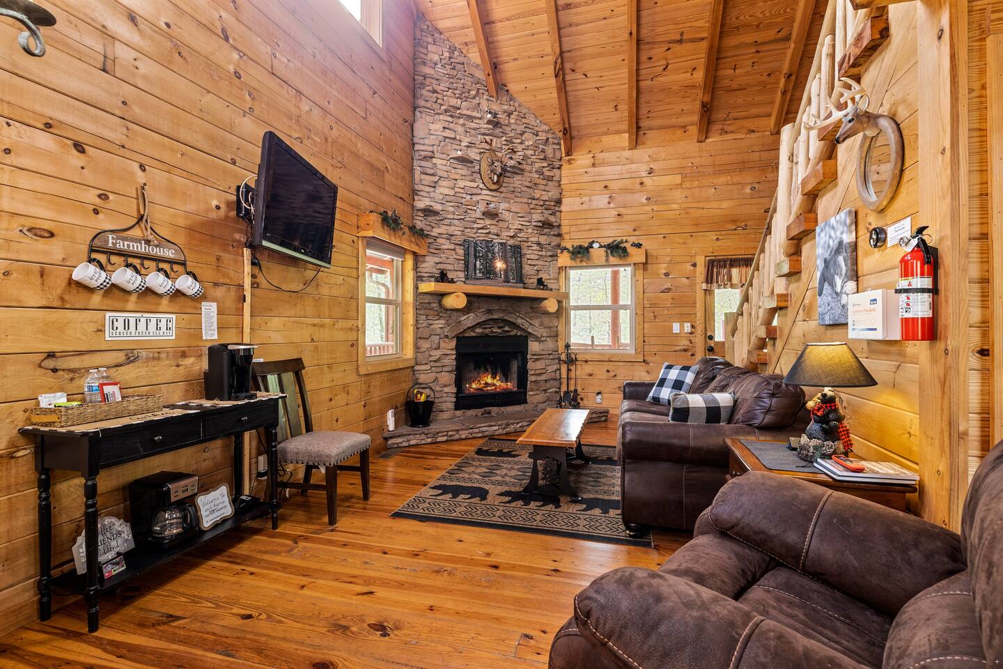 These cabins have been listed individually on ABNB and VRBO for years, with hundreds of 5-star reviews. Now we offer the entire property to you for your family reunion, corporate retreat, wedding party, or special event! Indulge your senses in these 4 stunning log cabins. 11BR, 18 beds/pullouts, 10 bathrooms on a private 16-acre gated compound near UTK and Downtown Knoxville, and only 45 mins to Gatlinburg and Pigeon Forge. This spacious estate offers the perfect retreat from bustling crowds with its rustic design, high-end comforts, fun amenities, and scenic outdoors! ✔ 11 Comfortable Bedrooms ✔ Open Design Living ✔ 4 Full Kitchens ✔ Bar & Game Room ✔ Sauna & Yoga Room ✔ 12+ Smart TVs, some with Rokus, all with YouTube TV ✔ High-Speed Wi-Fi ✔ Office Space ✔ Free Parking ✔ All cabins feature A/C, central heat, fireplaces, and hot tubs (4 of each!) ✔ Property features 16 acres, Bass fishing pond, game area, 5-acre dog off-leash hayfield ✔ Firepit for each cabin ✔ Gated entrance (Unique Keycode – deleted after each Check-Out) ✔ Catch-and-Release Pond with a fountain (barbless hooks only) ✔ Game Area (Horse shoe pit, Cornhole, Tetherball Pole) ✔ Hammocks ✔ Walking trails in the woods. These modern-rustic log cabin getaways sit on a majestic 16-acre property of rolling hills, a forest area with walking trails, hayfields, and a Bass fishing pond w/fountain and a dock as a central focal point. The 4 cabins are all within 100 meters of the pond. The Cabins: Big Ponderosa Cabin's 3500+ sq. ft. is built around a massive 3-story basement-to-roof rock fireplace with three cozy electric fireplaces offers a comfortable and enjoyable stay for up to 10 guests in 4 comfy bedrooms and 3 full bathrooms. Its modern layout, exceptional spaces, and entertaining amenities will provide the relaxation and convenience you seek while visiting Knoxville and the Great Smoky Mountains. This cabin is the nicest in Knoxville. You’ll discover the rejuvenating sauna and the yoga sunroom, creating a zen oasis that will melt all the stress away! Guests who like a more active form of entertainment will enjoy the game room with the wet bar, the perfect oasis to watch the big game, or a few rounds at the foosball table or arcade with 60 classic games like Donkey Kong, Pac-Man, Galaga, Mappy, and all your favorites! The stunning interior extends to the intimate porch, overlooking the awesome catch-and-release Bass pond, yard with luxury hot tub, magical fire pit, huge dining pavilion, and an array of vibrant colors between which you can catch a glimpse of Tennessee wildlife. *Pond/water view *3 Fireplaces *Full kitchen (DW, stove, oven, all cookware, spices, flour, sugar, etc) * 6 TVs w/Roku and YouTube TV (huge 85" 4k TV) *Wet bar w/TV, Arcade Games (60 classics), foosball, Connect 4 wall game, board, and card games. *Sauna and Yoga Room *Covered BBQ Pavilion *Firepit *1 king bed, 2 queen beds, 1 bunk bed twin/full, 1 sleeper sofa, 1 futon Little Ponderosa Cabin is our 2 BR, 2 BA, 1200 sq. ft. charmer that sleeps 5, with its upstairs bedroom loft overlooking the living room. It has our family's favorite porch overlooking the barn and hayfield... the perfect morning coffee spot. *Fireplace *Full kitchen (DW, stove, oven, all cookware, spices, flour, sugar, etc.) *Smart TV w/YouTube TV *Arcade Game w/60 classics *Connect 4 wall game, board, and card games. *Firepit *1 king bed, 1 queen bed, 1 twin air mattress Big Hoss Cabin boasts 1600+ sq. ft. on 3 levels, 3 BR and 3 BA, located in the woods near Little Joe Cabin, and will sleep up to 10. This cabin is all fun, featuring its firefighter-themed basement game room w/pool table, arcade games, and more. Step outside to enjoy the huge deck, rocking chairs, and swing to relax after a busy day exploring, or soak in the private hot tub outside on the patio in the woods. *Rock Fireplace *Full kitchen (DW, stove, oven, all cookware, spices, flour, sugar, etc.) *3 TVs with YouTube TV *Hot tub outside in the woods, under the stars *New pool table *Arcade w/60 classic games, *Connect 4 wall game, board, and card games *Firepit *1 King bed, 1 queen bed, 1 queen bunk bed, 1 sofa sleeper, 1 twin air mattress Little Joe Cabin is our 1200 sq. ft. 2 BR, 2-bathroom cabin on 2 levels that sleeps up to 6. It is located in the woods nearest to Big Hoss cabin. *Rock Fireplace *Private Hot tub outside under the stars *Fire Pit *Full kitchen (DW, stove, oven, all cookware, spices, flour, sugar, etc.) *2 TVs with YouTube TV *Arcade game w/60 classic games *Board and card games *1 Log King adjustable bed, 1 queen log bed, 1 sofa sleeper, 1 twin air mattress This is only a partial description of our cabins. For a complete list of pictures and descriptions of our cabins, please browse our host profile. Other things to note ★ PET-FRIENDLY CABIN ($25 fee per day/pet)★ Bring your furry friends along for an exciting vacation. They'll enjoy the spacious property, trails, and 5-acre off-leash hayfield while you relax in the luxury hot tub. Please get in touch with us before you book so we can approve your pets. ★ CLEANING & SANITIZATION ★ Our guests' health, safety, and well-being are of utmost importance. For this reason, we use a thorough cleaning process after each check-out. This even encompasses changing and washing all comforters, pillows, throw blankets, etc. ★ NO SMOKING INSIDE ★ Please refrain from smoking inside the cabins, on decks, or in hot tubs! Any smoking will result in a fee for odor removal and furniture cleaning. ★ NO PARTIES/EVENTS ★ Please treat our cabins as your own to keep their pristine condition for future guests and your return visits. Gatherings with additional visitors on the property must be approved. Thank you very much for your understanding