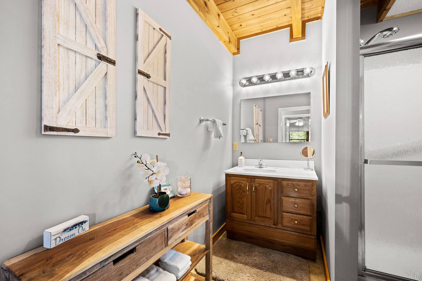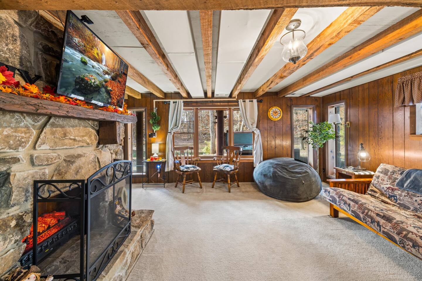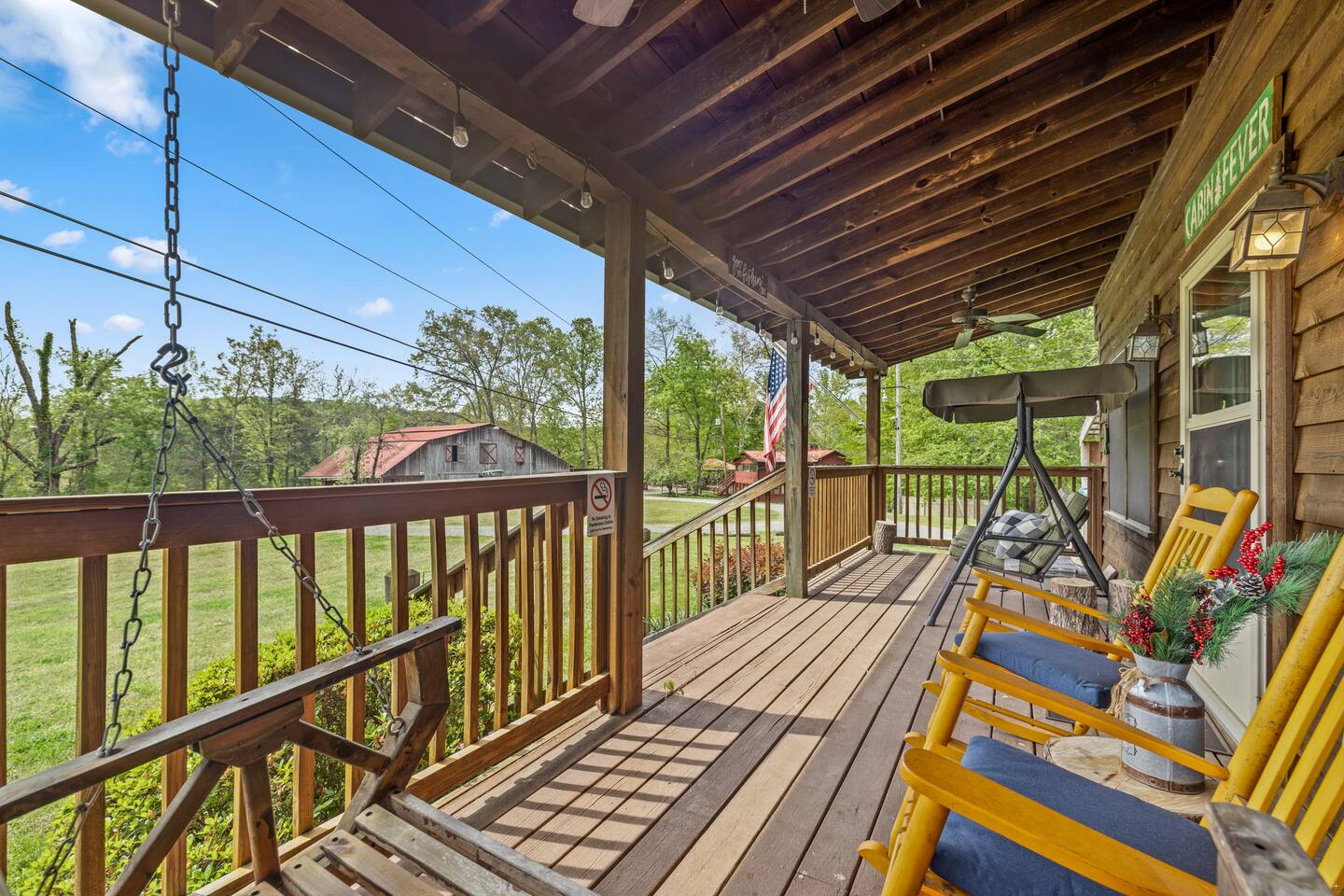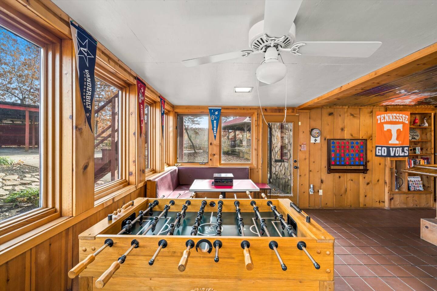 These cabins have been listed individually on ABNB and VRBO for years, with hundreds of 5-star reviews. Now we offer the entire property to you for your family reunion, corporate retreat, wedding party, or special event! Indulge your senses in these 4 stunning log cabins. 11BR, 18 beds/pullouts, 10 bathrooms on a private 16-acre gated compound near UTK and Downtown Knoxville, and only 45 mins to Gatlinburg and Pigeon Forge. This spacious estate offers the perfect retreat from bustling crowds with its rustic design, high-end comforts, fun amenities, and scenic outdoors! ✔ 11 Comfortable Bedrooms ✔ Open Design Living ✔ 4 Full Kitchens ✔ Bar & Game Room ✔ Sauna & Yoga Room ✔ 12+ Smart TVs, some with Rokus, all with YouTube TV ✔ High-Speed Wi-Fi ✔ Office Space ✔ Free Parking ✔ All cabins feature A/C, central heat, fireplaces, and hot tubs (4 of each!) ✔ Property features 16 acres, Bass fishing pond, game area, 5-acre dog off-leash hayfield ✔ Firepit for each cabin ✔ Gated entrance (Unique Keycode – deleted after each Check-Out) ✔ Catch-and-Release Pond with a fountain (barbless hooks only) ✔ Game Area (Horse shoe pit, Cornhole, Tetherball Pole) ✔ Hammocks ✔ Walking trails in the woods. These modern-rustic log cabin getaways sit on a majestic 16-acre property of rolling hills, a forest area with walking trails, hayfields, and a Bass fishing pond w/fountain and a dock as a central focal point. The 4 cabins are all within 100 meters of the pond. The Cabins: Big Ponderosa Cabin's 3500+ sq. ft. is built around a massive 3-story basement-to-roof rock fireplace with three cozy electric fireplaces offers a comfortable and enjoyable stay for up to 10 guests in 4 comfy bedrooms and 3 full bathrooms. Its modern layout, exceptional spaces, and entertaining amenities will provide the relaxation and convenience you seek while visiting Knoxville and the Great Smoky Mountains. This cabin is the nicest in Knoxville. You’ll discover the rejuvenating sauna and the yoga sunroom, creating a zen oasis that will melt all the stress away! Guests who like a more active form of entertainment will enjoy the game room with the wet bar, the perfect oasis to watch the big game, or a few rounds at the foosball table or arcade with 60 classic games like Donkey Kong, Pac-Man, Galaga, Mappy, and all your favorites! The stunning interior extends to the intimate porch, overlooking the awesome catch-and-release Bass pond, yard with luxury hot tub, magical fire pit, huge dining pavilion, and an array of vibrant colors between which you can catch a glimpse of Tennessee wildlife. *Pond/water view *3 Fireplaces *Full kitchen (DW, stove, oven, all cookware, spices, flour, sugar, etc) * 6 TVs w/Roku and YouTube TV (huge 85" 4k TV) *Wet bar w/TV, Arcade Games (60 classics), foosball, Connect 4 wall game, board, and card games. *Sauna and Yoga Room *Covered BBQ Pavilion *Firepit *1 king bed, 2 queen beds, 1 bunk bed twin/full, 1 sleeper sofa, 1 futon Little Ponderosa Cabin is our 2 BR, 2 BA, 1200 sq. ft. charmer that sleeps 5, with its upstairs bedroom loft overlooking the living room. It has our family's favorite porch overlooking the barn and hayfield... the perfect morning coffee spot. *Fireplace *Full kitchen (DW, stove, oven, all cookware, spices, flour, sugar, etc.) *Smart TV w/YouTube TV *Arcade Game w/60 classics *Connect 4 wall game, board, and card games. *Firepit *1 king bed, 1 queen bed, 1 twin air mattress Big Hoss Cabin boasts 1600+ sq. ft. on 3 levels, 3 BR and 3 BA, located in the woods near Little Joe Cabin, and will sleep up to 10. This cabin is all fun, featuring its firefighter-themed basement game room w/pool table, arcade games, and more. Step outside to enjoy the huge deck, rocking chairs, and swing to relax after a busy day exploring, or soak in the private hot tub outside on the patio in the woods. *Rock Fireplace *Full kitchen (DW, stove, oven, all cookware, spices, flour, sugar, etc.) *3 TVs with YouTube TV *Hot tub outside in the woods, under the stars *New pool table *Arcade w/60 classic games, *Connect 4 wall game, board, and card games *Firepit *1 King bed, 1 queen bed, 1 queen bunk bed, 1 sofa sleeper, 1 twin air mattress Little Joe Cabin is our 1200 sq. ft. 2 BR, 2-bathroom cabin on 2 levels that sleeps up to 6. It is located in the woods nearest to Big Hoss cabin. *Rock Fireplace *Private Hot tub outside under the stars *Fire Pit *Full kitchen (DW, stove, oven, all cookware, spices, flour, sugar, etc.) *2 TVs with YouTube TV *Arcade game w/60 classic games *Board and card games *1 Log King adjustable bed, 1 queen log bed, 1 sofa sleeper, 1 twin air mattress This is only a partial description of our cabins. For a complete list of pictures and descriptions of our cabins, please browse our host profile. Other things to note ★ PET-FRIENDLY CABIN ($25 fee per day/pet)★ Bring your furry friends along for an exciting vacation. They'll enjoy the spacious property, trails, and 5-acre off-leash hayfield while you relax in the luxury hot tub. Please get in touch with us before you book so we can approve your pets. ★ CLEANING & SANITIZATION ★ Our guests' health, safety, and well-being are of utmost importance. For this reason, we use a thorough cleaning process after each check-out. This even encompasses changing and washing all comforters, pillows, throw blankets, etc. ★ NO SMOKING INSIDE ★ Please refrain from smoking inside the cabins, on decks, or in hot tubs! Any smoking will result in a fee for odor removal and furniture cleaning. ★ NO PARTIES/EVENTS ★ Please treat our cabins as your own to keep their pristine condition for future guests and your return visits. Gatherings with additional visitors on the property must be approved. Thank you very much for your understanding