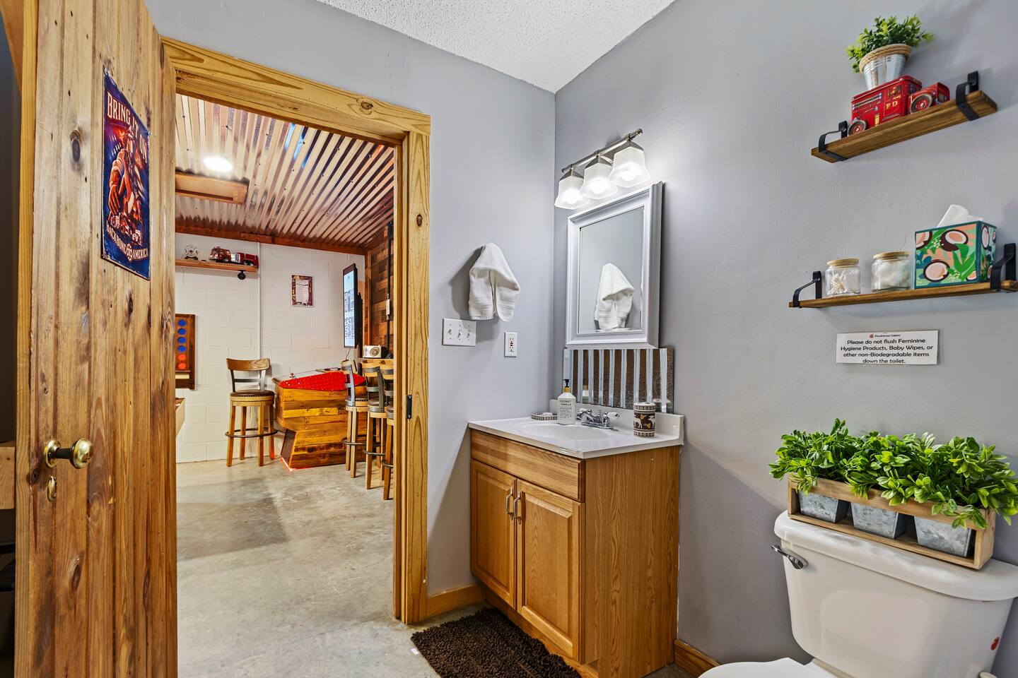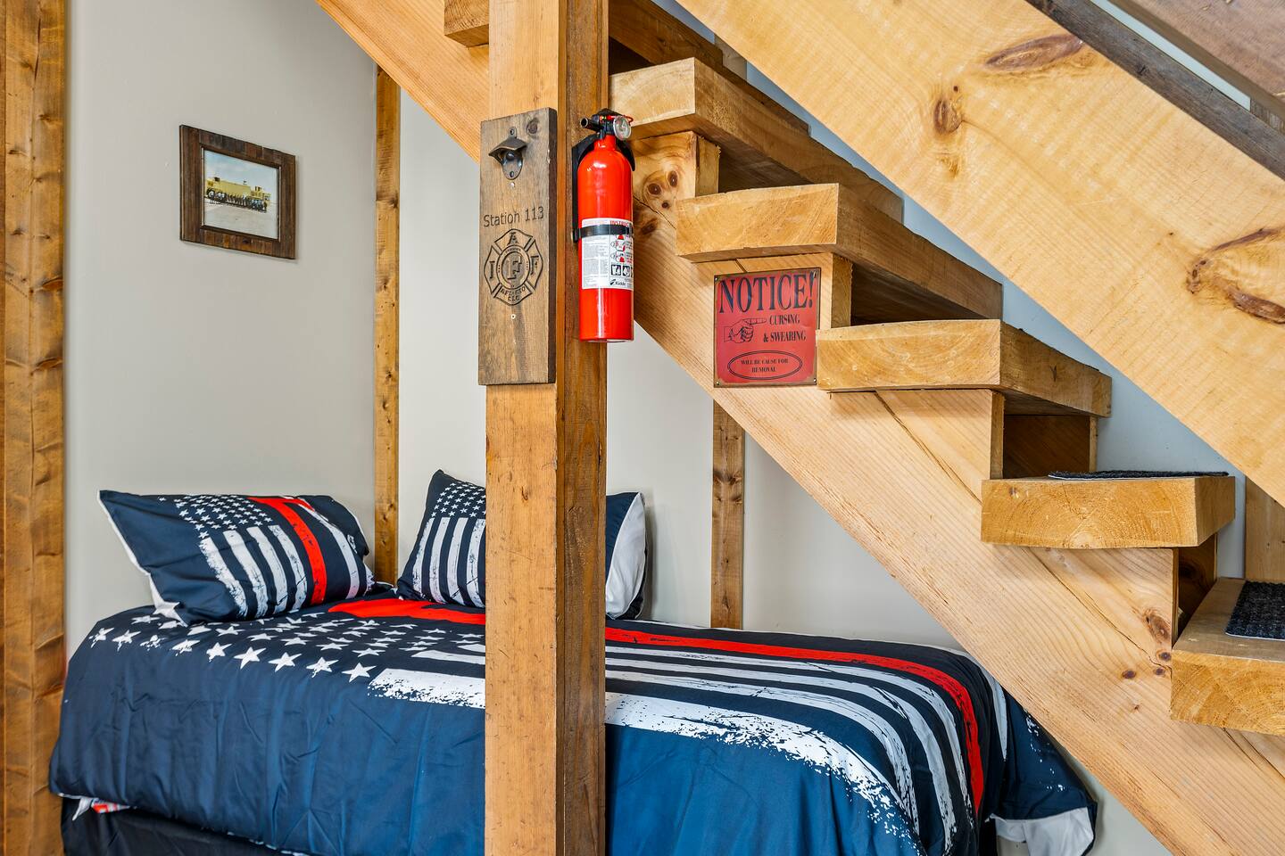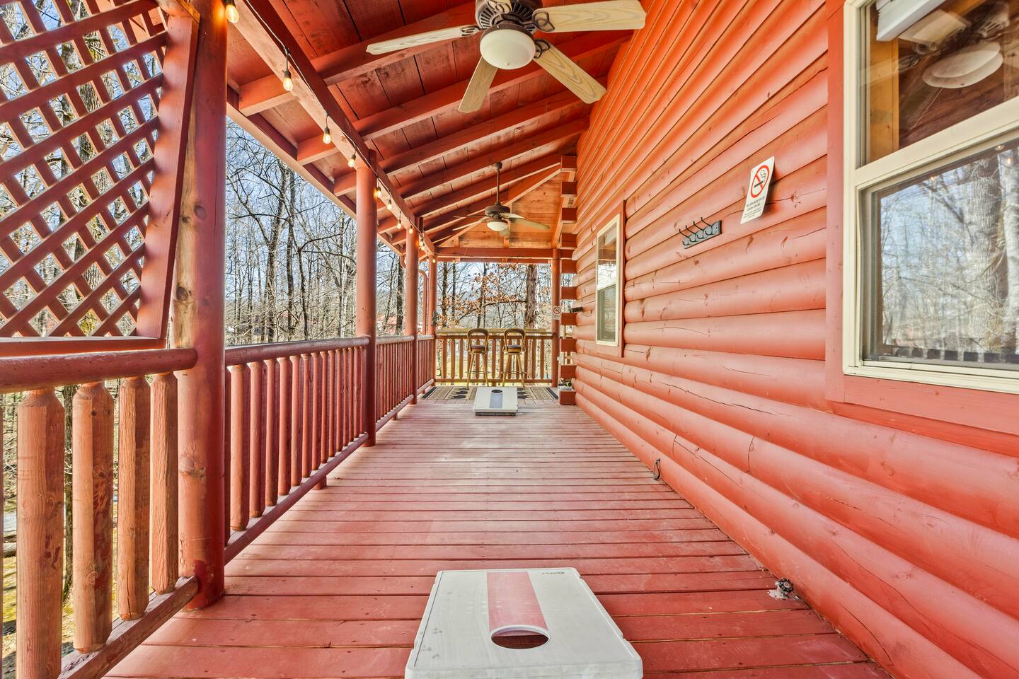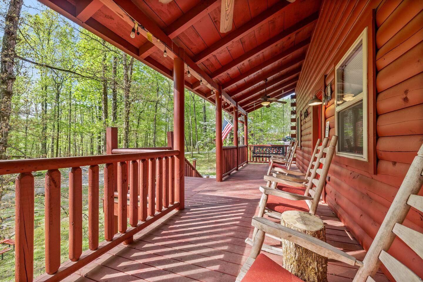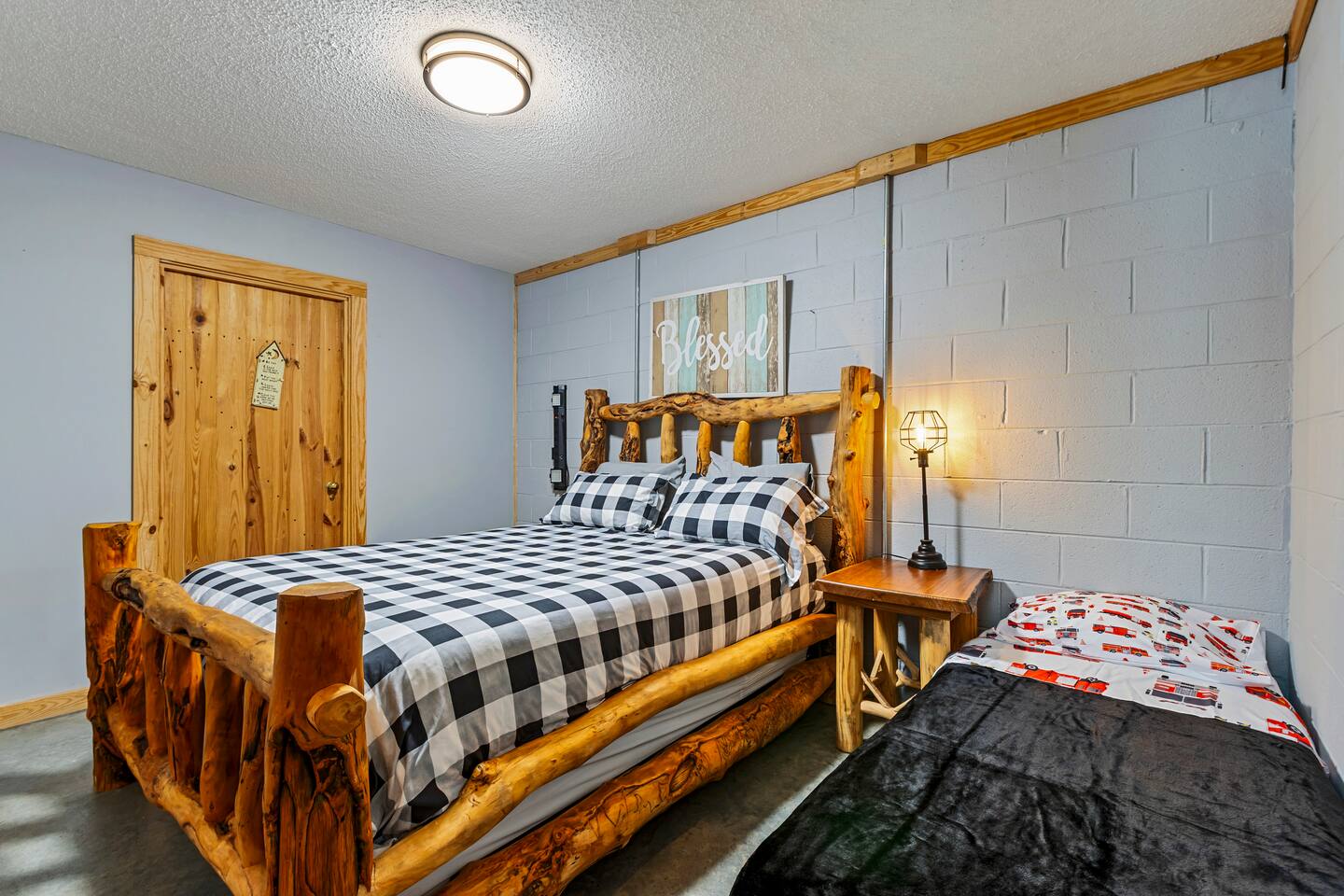As soon as you step foot in this beautiful three-floor cabin, you're greeted by the gorgeous yet highly comfortable open-concept living area, decorated in an elegant manner that complements the picturesque Ponderosa community location. The fully equipped kitchen blends with the dining area, offering a space to cook and enjoy tasty delicacies with your loved ones before unwinding in the relaxing living room, setting the scene for unforgettable evenings. Natural sunlight bursts through many windows, making the home shine bright during the day, accenting the wooden build and carefully chosen furniture, and enhancing the pleasant setting. Rest in the three comfortable bedrooms, which boast 5* comforts that allow you to recharge after an exciting day of outdoor activities. But wait! The best is yet to come! Step out onto the wraparound deck, where you can lounge on the rocking chairs and the porch swing or play cornhole. Or, completely unwind in the luxury hot tub outside in the woods. The deck overlooks the picturesque yard with the game area, fire pit, and picnic area. Let the designated BBQ master work their magic on the propane grill while you try your luck by fishing at the private Ponderosa catch-and-release Bass pond. When you've had enough of the great outdoors, you can retreat to the basement firefighter-themed game room and have a fun tournament to decide who takes the crown of the Ponderosa pool champ, or the arcade game with 60 classics There's so much to do in this inviting cabin. We look forward to you experiencing its complete comfort and coziness. ★ LIVING ROOMS ★ You will feel right at home! Sink into the comfortable sofa by the fireplace, take a moment to unwind, watch your favorite show, play board games, or plan your upcoming adventures. ✔ Comfortable Leather Sofa with Pillows ✔ Smart TV with Xfinity and Roku ✔ Board and Card Games ✔ Fireplace ✔ Comfortable Sofa Chair ✔ Stylish Coffee Tables ✔ Access to the Deck ★ KITCHEN & DINING ★ This fully equipped kitchen boasts modern appliances, making it easy to whip up anything from delicious breakfasts to gourmet dinners. With ample countertops, you'll have plenty of room to showcase your culinary skills. ✔ Microwave ✔ Stove ✔ Oven ✔ Toaster ✔ Hot Water Kettle ✔ Refrigerator/Freezer ✔ Dishwasher ✔ Sink - Hot & Cold Water ✔ Plates ✔ Glasses ✔ Silverware ✔ Pots & Pans Unwind and catch up with your loved ones on the lavish deck while the food is prepared. When done, gather at the dining table and savor a delicious meal in a warm and inviting atmosphere. ✔ Dining Table with Seating for 5-6 ✔ Coffee (Keurig Machine, Drip Coffee Maker) ★ SLEEPING ARRANGEMENTS – 3 BEDROOMS ★ After an exciting day of exploring the thrilling Knoxville attractions and Smokey Mountains natural landmarks, you will look to rest for an equally entertaining tomorrow. Once you are ready to relax, please make your way to these comfortable bedrooms. ♛ Master Suite (Upper Floor): King-Size Bed, HDTV, Ensuite Bathroom ♛ Bedroom 2 (Main Floor): Queen-Size Bed ♛ Bedroom 3 (Basement): Queen Bed & twin roll-away bed in Bedroom, Full Pull out couch, twin bed under stairs in game room & blowup mattress for anywhere you want to put it. All bedrooms share a similar set of amenities. ✔ Premium Mattresses, Linens, Sheets, and Pillows ✔ Closets with Hangers and Shelves (Walk-In in Master) ✔ Dressers with Spacious Drawers ✔ Night Stands with Reading Lamps and Device Chargers ★ BATHROOMS ★ In addition to the master bedroom's ensuite bathroom, the home features additional two full bathrooms on each floor. All are stocked with essential toiletries and pampering towels to ensure a carefree stay. ✔ Walk-In Shower ✔ Bathtub with a Shower ✔ Vanity ✔ Mirror ✔ Toilet ✔ Towels ✔ Hair Dryer ✔ Costco size Essential Toiletries ★ GAME ROOM ★ Come to the firefighter-themed game room in the walkout basement to discover numerous relaxing and entertaining amenities. Be careful, though. You'll quickly lose track of time in this fun space! ✔ Firefighter Classic Arcade with 60+ Games ✔ Connect 4 Wall Game ✔ Pool Table ✔ Board Games ✔ Mini Jumbotron with 4 TV's to watch ✔ Comfy Seating Areas ✔ Mini Fridge ✔Firefighter themed Twin bed under stairs ✔Pull-out couch ✔Bar with stools ✔ Access to the Yard ★ DECK, YARD & COMMUNITY POND ★ A stunning getaway would not be complete without a private space where you can take in the serenity and beauty of the outdoors. Step onto the wraparound deck to catch a breath of fresh air and completely unwind in the luxurious hot tub. ✔ Luxurious Hot Tub (in the Covered Pad) ✔ Porch Swing ✔ Rocking Chairs and Log Tables ✔ BBQ Grill (Propane) ✔ Ceiling Fans ✔ Ring Toss Game The spacious yard offers more areas to create memorable moments with family and friends. ✔ Picnic Table with Benches ✔ Fire Pit with Surrounding Seating (firewood for sale on property) ✔ Game Area (Horse Shoe Pit, Cornhole, Tetherball Pole) The deck and yard are completely private, while the magical pond is accessible by guests in all four of our cabins. It offers a perfect place to immerse yourself in natural tranquility and try your luck at catching bass and bluegill. ✔ Catch-and-Release Pond with a Fountain ✔ Hammocks Find your happiness in this attractive retreat. It offers a place to escape the hustle and bustle of everyday life, have fun in the game room, watch a movie, unwind in the hot tub, and explore exciting natural attractions. Don't hesitate to contact us with any questions you may have. Happy Travels!